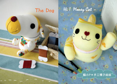 販售商品:貓小P手工襪子娃娃,手工雜貨,繪本明信片