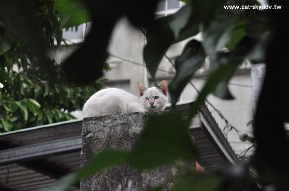 貓在高高的牆上,她知道妳來看她,與她說話,但貓也有她的心事,這是她與妳的安全距離。