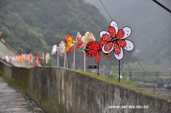 喵拔淋著雨還幫忙在石頭屋牆上將黑貓風車架固定,小P太感謝他一直跟喵拔說謝謝,好像快把他嚇壞了..@@