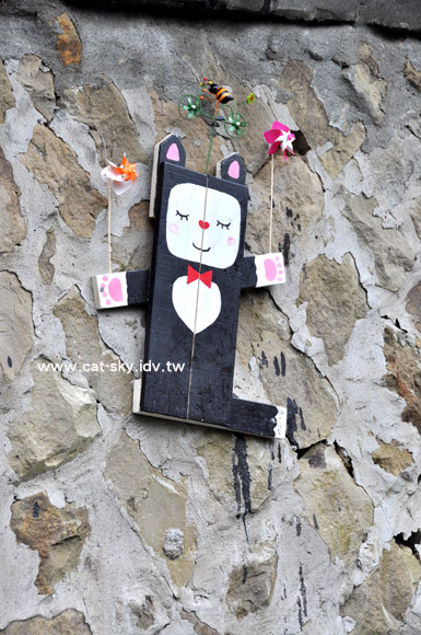 好喜歡這個貓咪風車架,迷你小風車安置在貓咪手上頭上,應該就不擔心飛走了....