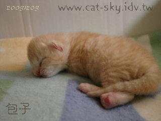 小包子,四腳朝天,肚子鼓鼓的還不太會翻身,還一直呼呼大睡,很有趣。 |